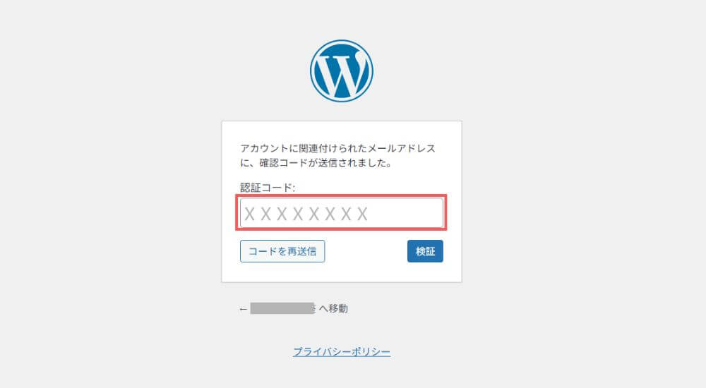 認証コードの入力欄が表示されるので、メールに届いた認証コードを入力すると、管理画面にログインできます。